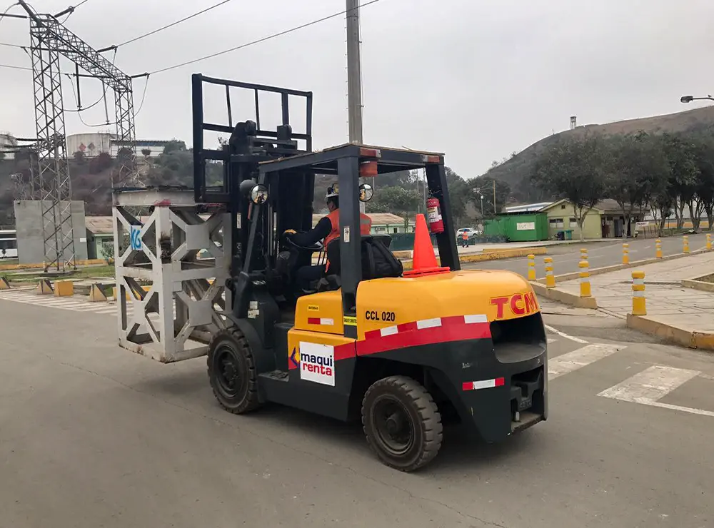 Servicio de alquiler de montacargas en Lima y a nivel nacional, con capacidades desde 2.5 hasta 20 toneladas.