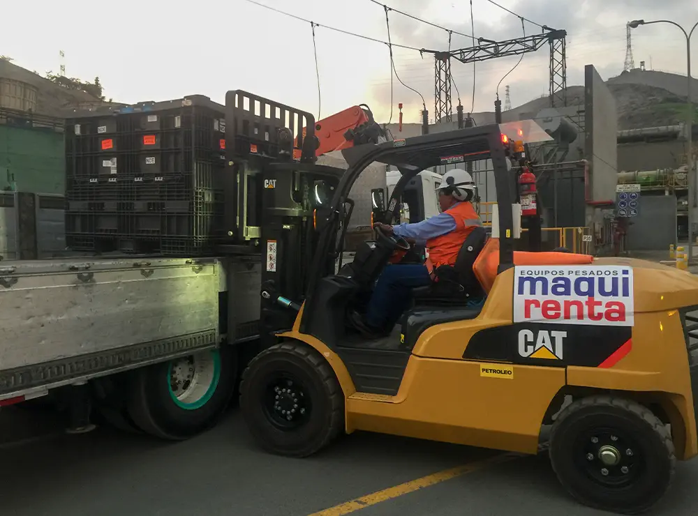 Servicio de alquiler de montacargas en Lima y a nivel nacional, con capacidades desde 2.5 hasta 20 toneladas.